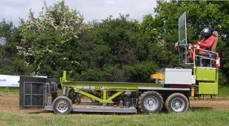 This sledge was built in Northamptonshire in the spring of 2010. It has the ability to allow Garden and Compact Diesel Pullers to hook to the front and stop them down the track in fair competition. This sledge is fitted with a 1.9L Peugeot diesel engine and is self-propelled allowing the operator to drive the sledge to and from the track as well as back to the start line after each pull. The operator has a choice of 4 gears of which cannot be changed whilst the sledge is in pulling motion and this is to set the speed of the weight box depending on the class pulling at the time. The Sledge is now owned by the PPA and is graded at SILVER by the ETPC (European Tractor Pulling Committee Sledge Inspection Team)